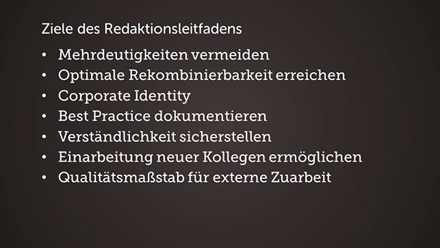 Die gute Nachricht ist, dass man für das Schreiben von guten Texten kein Naturtalent sein muss. Sich sicher, verständlich und präzise auszudrücken, das kann man lernen! Strukturierungsmethoden und Redaktionstools sind nur Werkszeuge, dessen Beherrschung man trainieren kann. Didaktik und Zielgruppenorientierung sind Prinzipien, die logisch und nachvollziehbar aus den Anforderungen abgeleitet werden können.